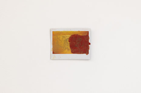 "The paintings are made horizontally, unstretched on the floor. Working in this way the largest two canvases take up almost the entirety of the artist’s studio space.
